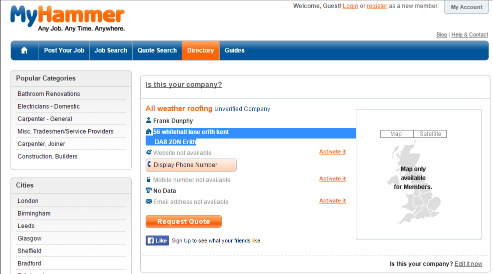 Let’s start with Frank Dunthy of unregistered All-Weather Roofing Erith (originally registered at 56 whitehall lane, Erith, Kent, DA8 2DN)
